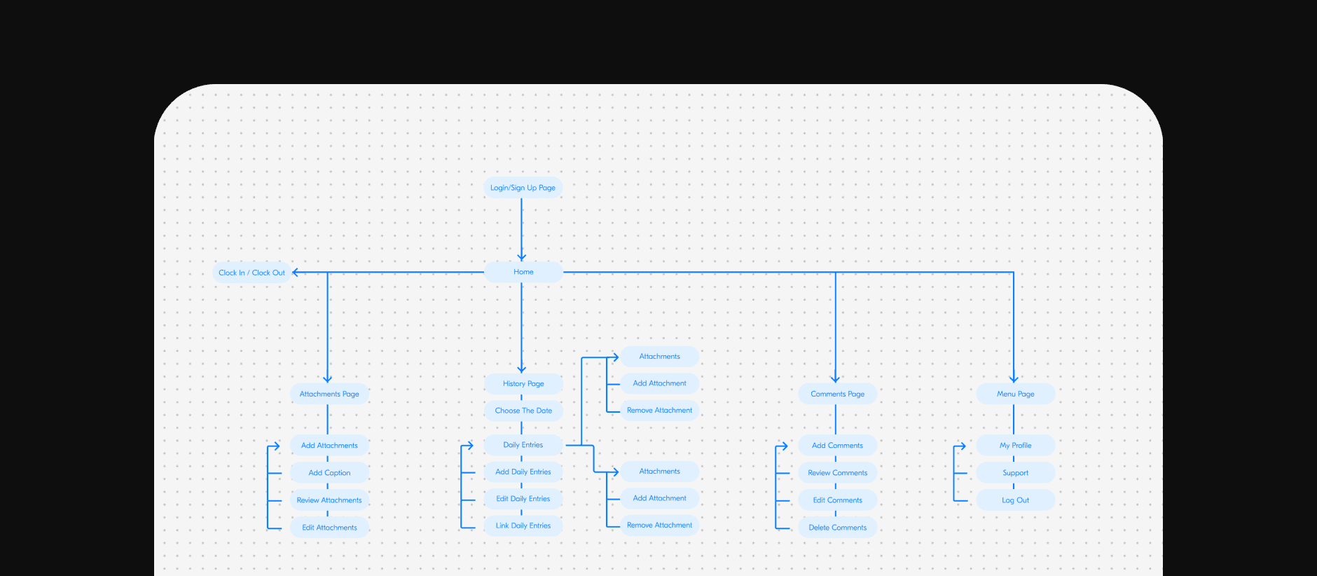 User flows were created to define key interactions, decision points, and navigation logic across the product. This step helped establish a clear structure for how users move through core workflows before transitioning into interface design.